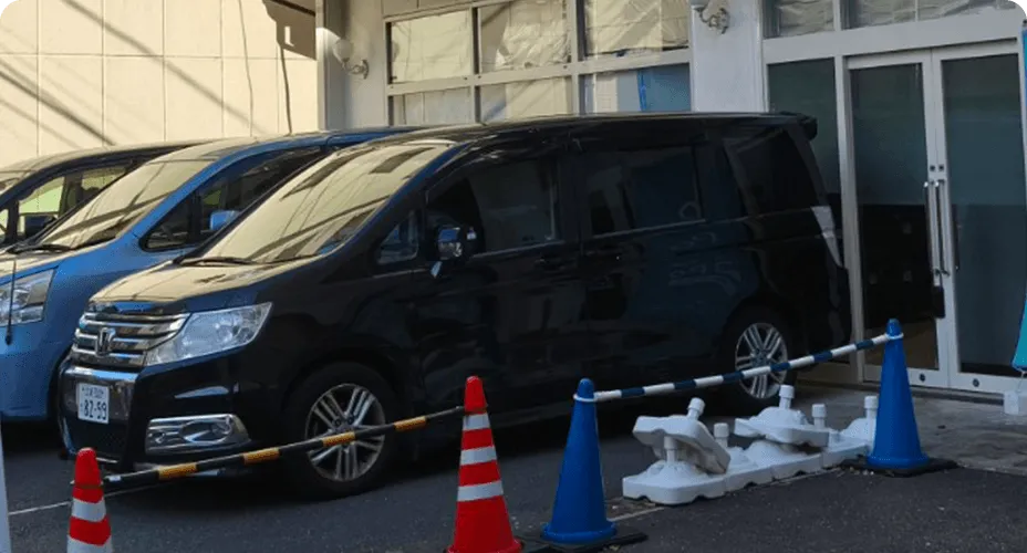 • ヴォクシークラス(ナビ・モニター付)の送迎車で安心